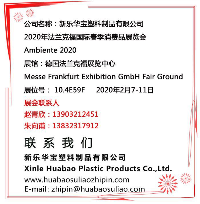 2020年法蘭克福國際春季消費品展覽會/20.2.7-11/10.4E59F/誠邀您的參加! 上一個:全球抗新冠,華寶在行動 下一個:【拼搏2020】華寶集團2019總結(jié)表彰暨2020迎新晚會圓滿結(jié)束